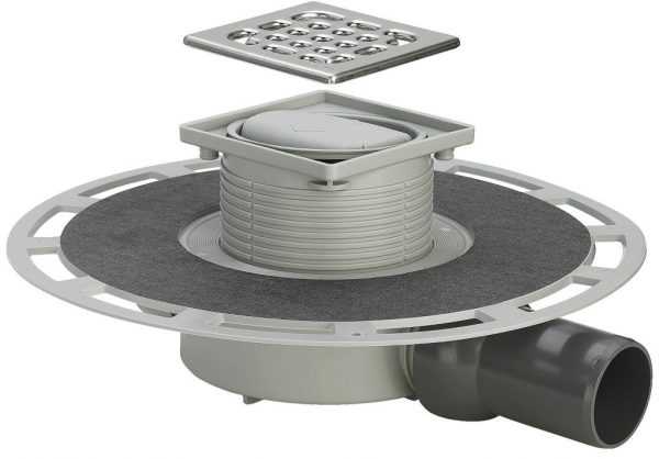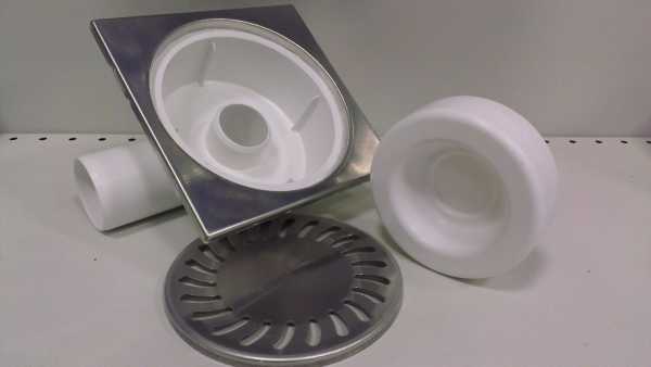 Кроме выбора конструкции затвора, желательно подобрать размер сетки так, чтобы удобно было класть плитку на пол: желательно чтобы размер слива был кратен размерам плитки (в том числе и мозаики). Обратите внимание и на материал корпуса. Для душевой кабины в квартире или доме вполне подойдет пластик. Это наиболее демократичные по цене варианты. Более дороги трапы в пол из полипропилена, еще дороже — из нержавеющей стали.