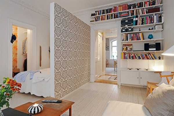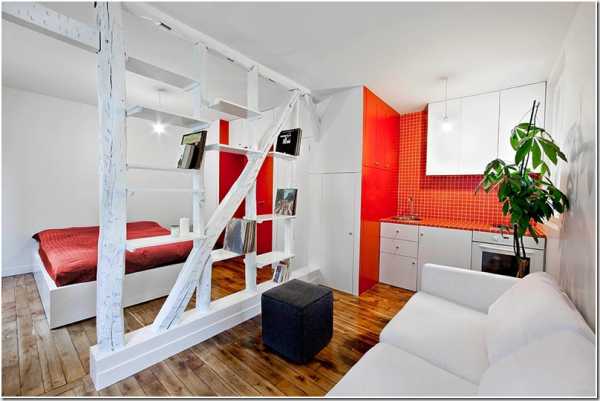 В малогабаритной квартире, к сожалению, не всегда получается воплотить в жизнь все те идеи, которые приходят на ум. Но помещение можно зонировать при помощи стеллажей, создав таким образом в нем небольшую, но очень уютную квартирку.