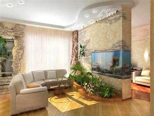 Гостиная, спальная и игровая комната – все в одном. Конечно же, в такой комнате идет ожесточенная борьба за пространство. Учимся на ошибках. Ошибка первая: многие считают, что расположение мебели вдоль стены сохраняет пространство. Спешим вас разочаровать — это правило не всегда работает. Если вы поставите диван в однокомнатной квартире вдоль стены (предположим, что он еще и раскладывается, т.е. это ваше спальное место), то место перед ним уже ничем не занять. И вряд ли ваша комната настолько широкая, чтобы сбоку от дивана поставить еще что-то: журнальный столик, кресло. Предлагаем следующий вариант: диван вы ставите в центре комнаты, скажем лицом к телевизору. Получается одна совмещенная зона для отдыха, для развлечений. Спиной к дивану на некотором расстоянии друг от друга располагаем креста, между которыми можно поставить: журнальный столик, тумбочку, подставку с аквариумом, большой цветок и т.д. Таким образом, мы разделили комнату визуально на две части, а вот практических функциональных зон получилось куда больше. Вторая ошибка: все слишком явно. Все в быту нужны пылесосы, гладильные доски, утюги – в общем то, что не украшает интерьер, но без чего не обойтись. Так вот, необходимо выделить под такие вещи отдельное место и желательно в коридоре. Смысл в том, что вещи, которыми мы пользуемся от случая к случаю должны находиться на второстепенных позициях. То же самое касается, например и книг, которые принято размещать в гостиной. Что ж собственная библиотека – это похвально, но ее можно перенести и в коридор.