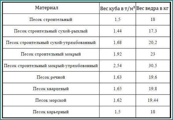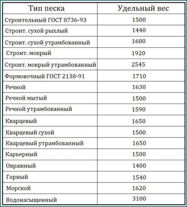 Удельный вес песка кг м3 или удельные показатели массы — это показатель, что можно поместить в объемной шкале.