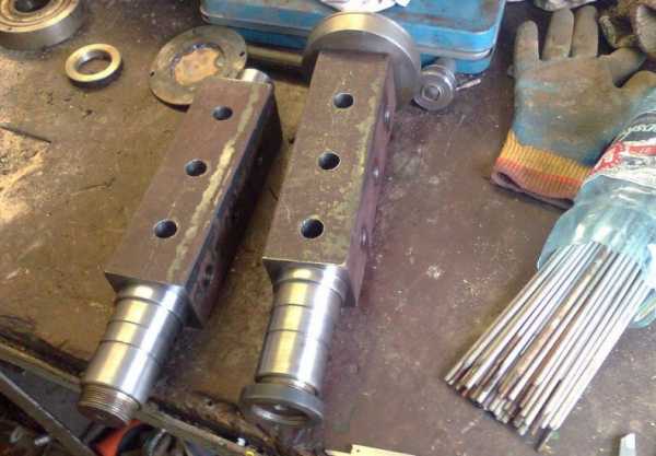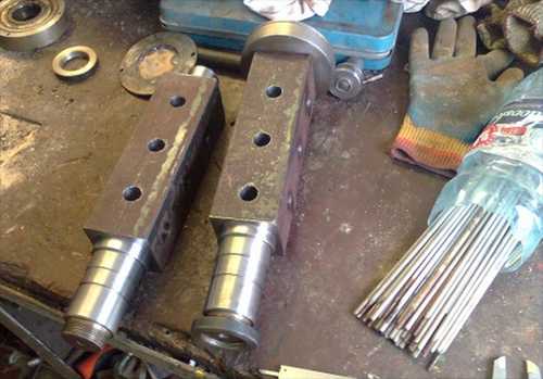 - в двух металлических пластинах, которые будут стенками, вырезаем отверстия для установки в них подшипников. Сделать это лучше всего при помощи сварочного аппарата, а затем отшлифовать края. Или можно обратиться на предприятие. В этом случае отверстия будут идеальной формы;