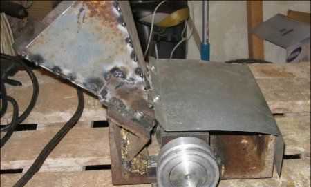 - создаем приемный короб и устанавливаем его сверху дискового измельчителя.