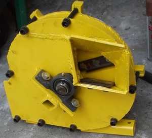 Формируется барабан, который состоит из 2 стенок, 4 шпилек и защитного кожуха. Для создания стенок используется металл толщиной 10 мм. В них изготавливается по 2 отверстия для подшипников.