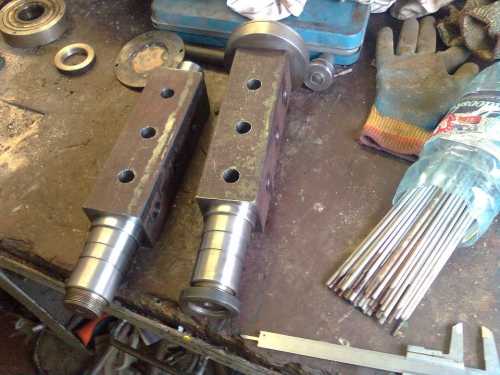 Рама изготавливается в обычном порядке. Если планируется установка 4 ножей, то берется квадратная заготовка и с 2-х сторон вытачиваются валы для вхождения в подшипник. Для 3 ножей нужен круглый брусок, в котором делаются срезы под них. В болванках сверлятся отверстия.