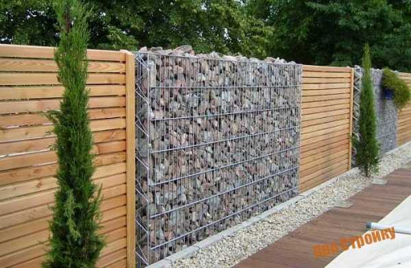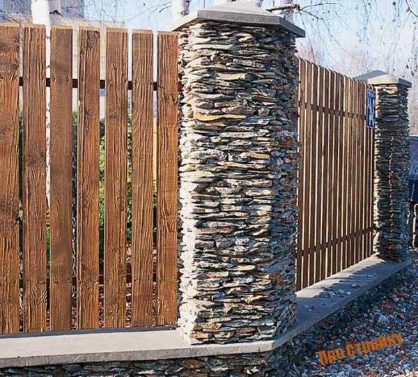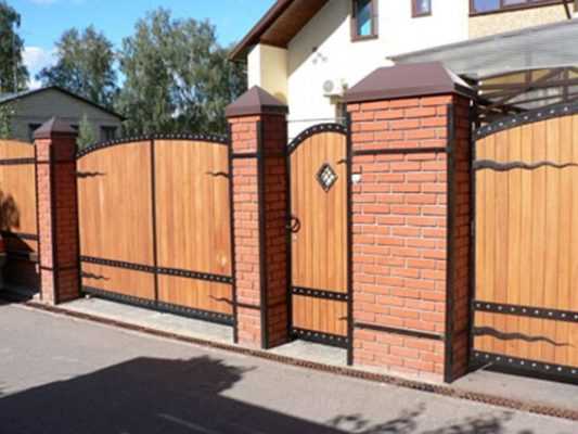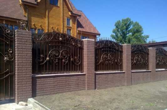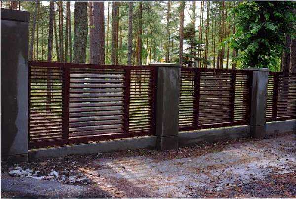 При сооружении комбинированных ограждений, как правило, берутся следующие сочетания: металл с камнем, бетон с кирпичом либо металл с деревом.