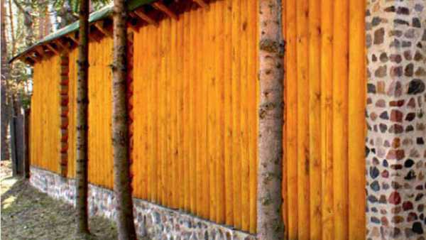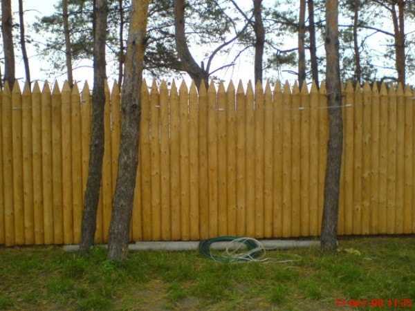 Хвойные породы имеют низкую цену, отличаются прочностью и стойкостью к климатическим условиям. Также заборы производят из таких пород дерева, как ольха, ясень, дуб, осина.