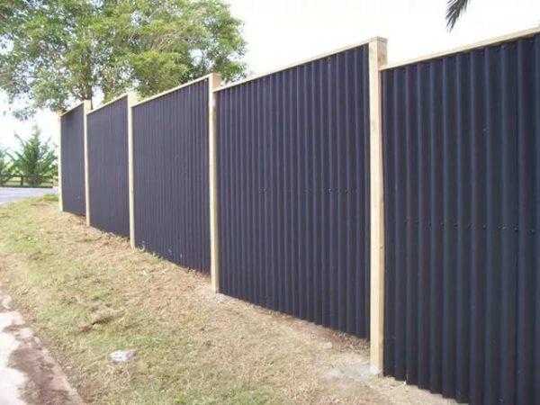 В качестве еще одного варианта с использованием металла выступает забор из профлиста. Данный вид обзавелся огромной популярностью из-за своей долговечности, легкости установки и небольшой цене. В магазинах сегодня можно подобрать профилированный лист любых габаритов, конфигурации, оттенков и цветов. Дополнительным преимуществом выступает наличие на поверхности защитного антикоррозийного слоя.