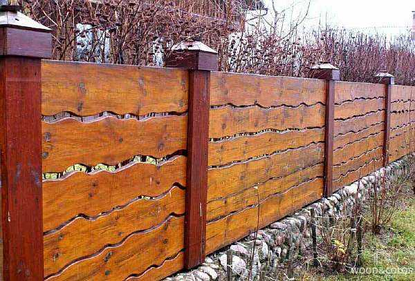 Каждый из вариантов дает возможность реализовать свой уникальный вариант, как по структуре, так и конструкции. Легкость обработки стройматериала позволяет реализовывать на участке ажурные либо сплошные плоскости, любого вида, дизайна, высоты и конфигурации. При этом совсем не обязательно окрашивать дерево, всегда можно использовать его в «первозданном» виде, обработав материал только прозрачной олифой.