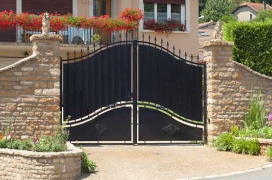 Такой забор подчеркнет статус владельца дома и будет уместен в элитных загородных поселках и местечках, где предусмотрены и другие способы охраны недвижимости.