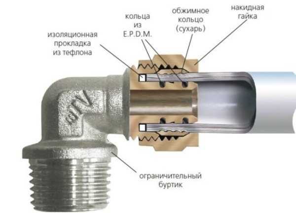 Труба из сшитого полиэтилена и устройство фитинга для нее.