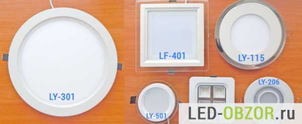 На рынке присутствует множество конструкций. Встраиваемые светодиодные модели отличатся друг от друга параметрами размеров, формами, количеством лампочек, цветом, показателями мощности и углом подачи светового потока.