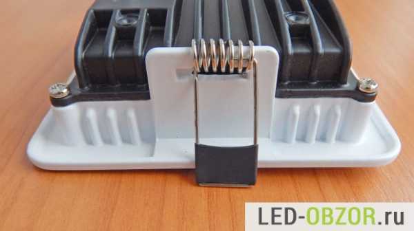 - Вставляем светильник внутрь и фиксируем его с помощью удобных подпружиненных зажимов.
