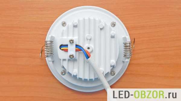 Чаще всего эти светильники устанавливаются в подвесные потолочные конструкции (гипсокартонные, реечные, панельные и так далее). При этом сам прибор врезается прямо в обшивку и закрепляется на ней специальными подпружиненными усиками, которые распирают монтажную конструкцию вдоль плоскости потолка.