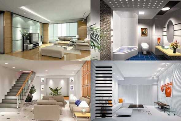 Меньше всего проблем с размещением создают встраиваемые потолочные изделия с небольшой конструкцией. Их располагают в любой последовательности, используют для декоративного оформления помещения или ради расстановки акцентов на объектах в комнате. Комбинируя модели с разной мощностью светового потока, достигают нужного сочетания при установке приборов в светлые углы помещения и темные.