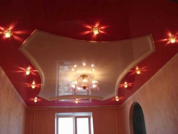 Их же часто используют для организации освещения комнаты, где смонтирован натяжной потолок. Но в этом случае точечный потолочный светильник устанавливается и закрепляется на специально подготовленную конструкцию, которая закреплена на базовой потолочной поверхности. Это делается с одной единственной целью – чтобы избежать провисания натянутого полотна.