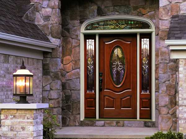 Если необходимо подчеркнуть индивидуальную особенность дома и выделить его из десятков других, похожих по архитектурному оформлению коттеджей, установка двери со стеклом — лучшее решение этой задачи.