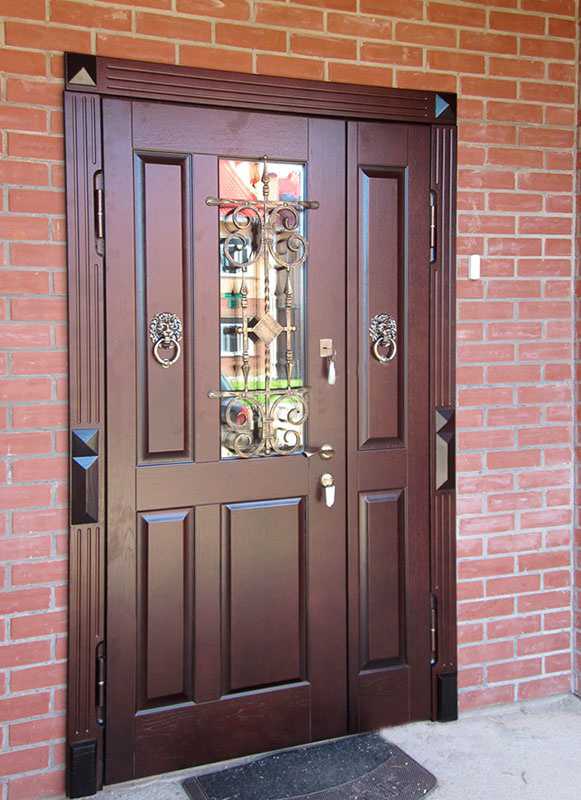 Другим методом повышения безопасности входных дверей со стеклом стало использование стеклопакета с повышенной стойкостью к механическим воздействиям и ударам. При этом рекомендуется реализация подобного технического решения в комбинации с кованными металлическими решётками.