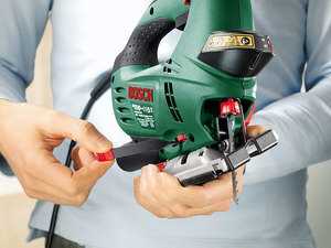 На удобство в работе инструментом также влияет и наличие системы замены пильного полотна, фиксируемого при помощи зажимных винтов или специального механизма. Наиболее предпочтительными считаются модели с фиксатором резака, выполненным по второму варианту, поскольку для замены не нужно использовать специальный ключ, а это позволит максимально быстро поменять пилу.