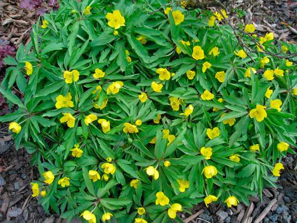 - Анемона — это сорт с низкой листвой и вертикальными цветами.