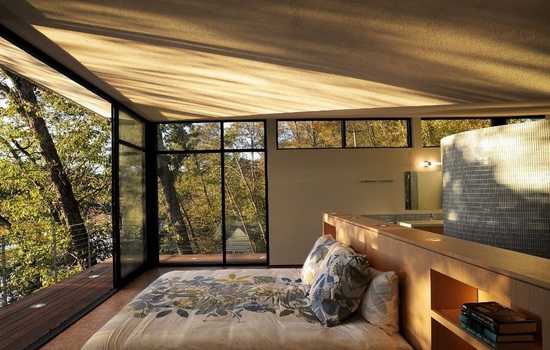 - Спальня является местом отдыха и уединения, а значит высота подоконника здесь допускается на уровне 900 мм от пола, что способствует дополнительному сохранению тепла.