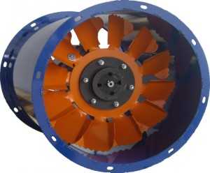 - Осевой вентилятор — наиболее распространённый среди владельцев обычных квартир в многоэтажках. Он представляет собой колесо с лопастями, находящееся на оси двигателя с электроприводом. Вся эта конструкция помещена в цилиндрический корпус. Лопасти, вращаясь, захватывают потоки воздуха и перемещают их в нужном направлении. На входе в прибор устанавливается коллектор, который улучшает аэродинамические свойства. Монтируется такой вентилятор прямо в шахту вентиляционного канала, и простотой установки объясняется популярность этой модели. Тем не менее и у него есть свои минусы, один из которых — производимый шум, иногда достигающий 50 дБ.