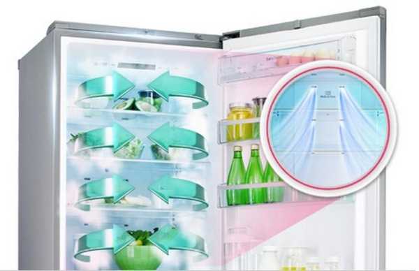 Наименее хлопотная, но присутствует преимущественно в дорогих моделях — No Frost. Означает – без льда, то есть в морозильной камере не скапливается лед. А благодаря циркуляции воздуха, влага скапливается внутри стенок и испаряется, стекая в резервуар. Температура в холодильнике поддерживается на одном уровне, и продукты хранятся намного дольше.