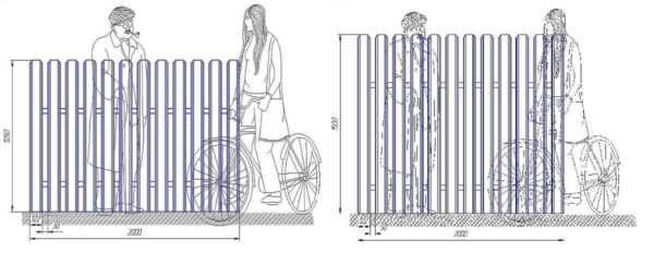 Если вас не волнует, будет что-то видно через забор или нет, можно брать и 1250 мм и 1500 мм. В первом случае ограда будет заканчиваться где-то на уровне груди прохожих, во втором — на уровне глаз или чуть ниже (примерный расклад смотрите на рисунке), и это без фундамента.