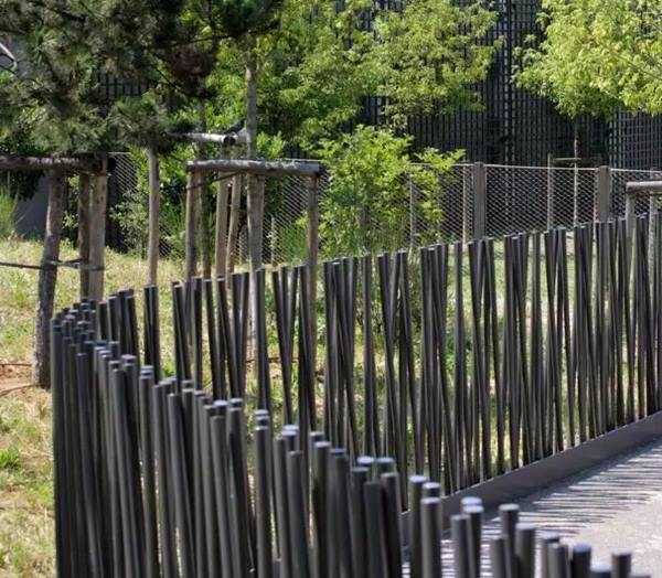 С помощью металлического штакетника в зависимости от конкретной цели опытный дизайнер может создать как облегчённые варианты, так и неприступный и фундаментальный вид ограждения.