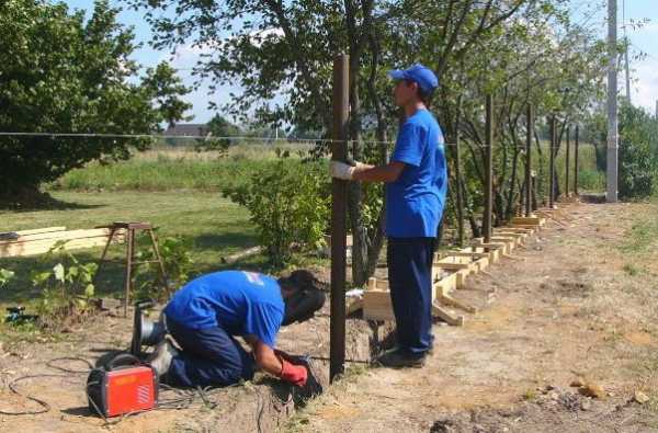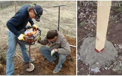 - Проводим их установку в грунт. Для большей надежности рекомендуется проводить их заливку бетонным раствором. Особенно важно это для металлических столбов.