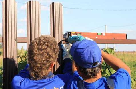 В принципе, если не хочется тратить деньги на строительную бригаду, произвести монтирование забора вы можете и самостоятельно, без помощи специалистов. Потребуются минимальные навыки и несколько инструментов. Это дрель или шуруповерт, заклепочник, а также ручной бур или лопата. Конечно, если планируется применить в качестве прогонов квадратную трубу, нужен будет еще и сварочный аппарат, а также кисточки для покраски. Львиная доля времени уйдет как раз-таки на работу буром при выкапывании ям под столбы, либо фундамент.