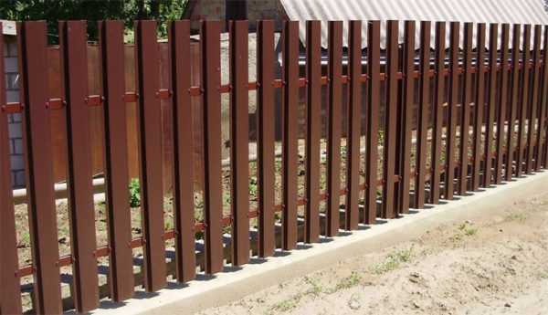 Забор из металлического штакетника фото: фото,цены, установка своими руками