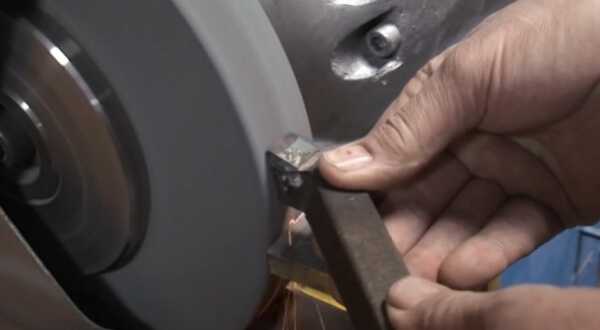 Для заточки резца рабочая кромка должна быть расположена на одной линии с серединой абразивного круга. Стоит принимать во внимание, в каком направлении вращается точило. Так вы сведете к минимуму шанс того, что режущая пластинка оторвётся от резцовой державки. При вращении точила пластинка должна быть прижата к державке, а не оторвана от нее.