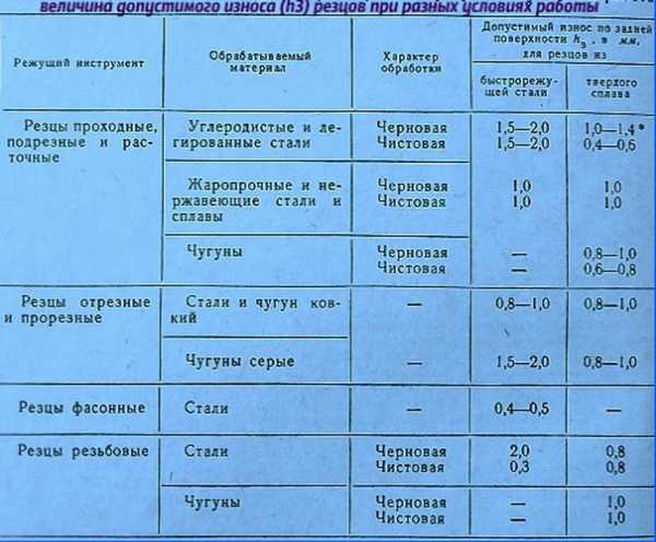 При превышении максимально допустимой величины износа резец не может быть использован для дальнейшего проведения работ и требует заточки и доводки по передней и задней поверхности.