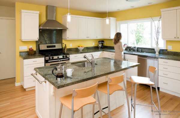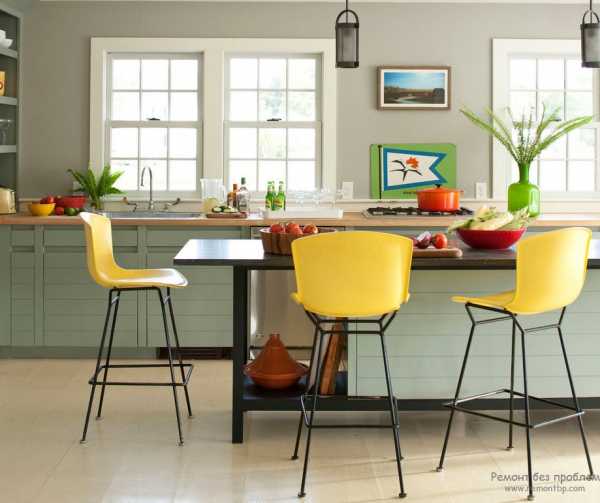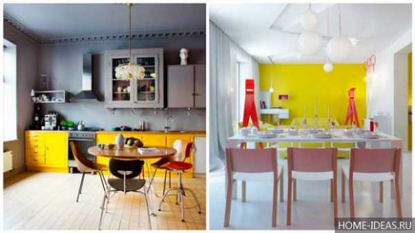 Выбор ярких красок при ремонте кухни рекомендуется тем, кто следит за своей фигурой. Активная выработка желудочного сока, которую провоцируют солнечные оттенки желтого, способствует лучшему усвоению пищи.