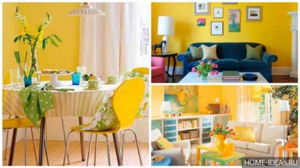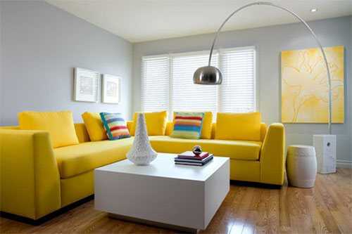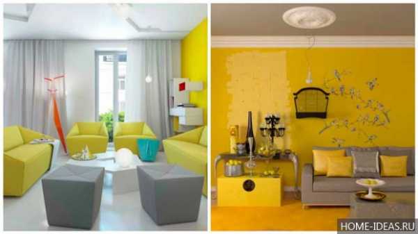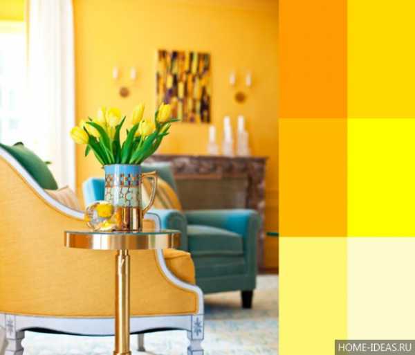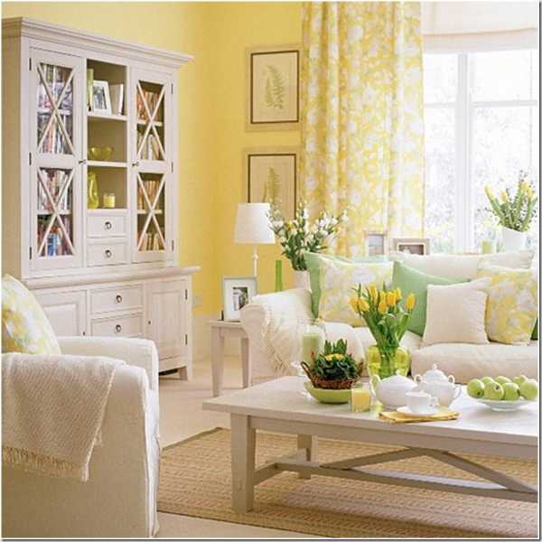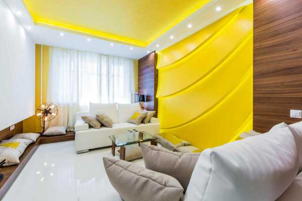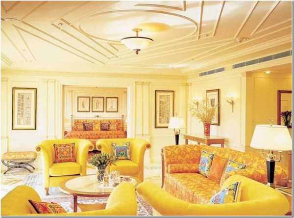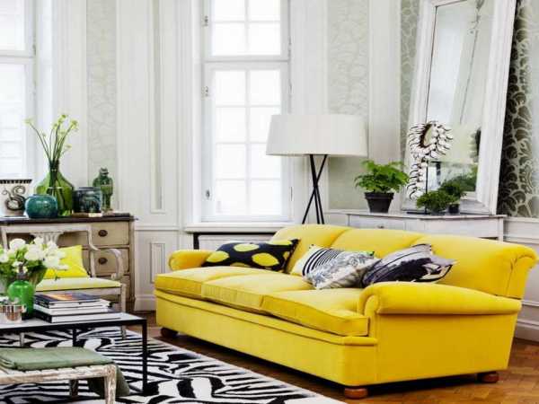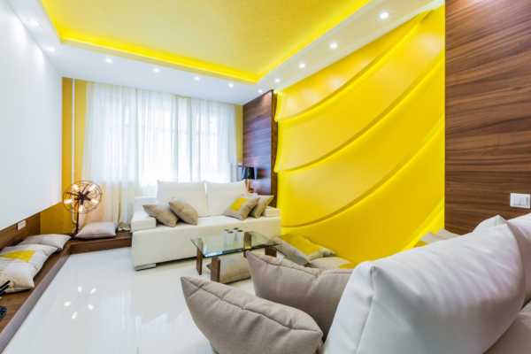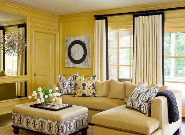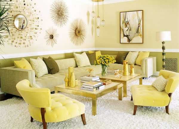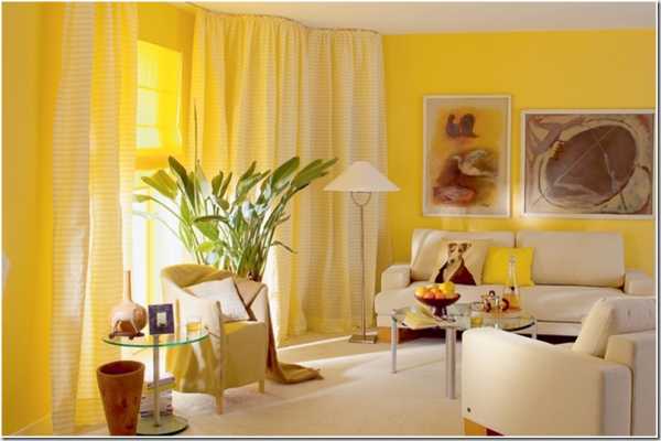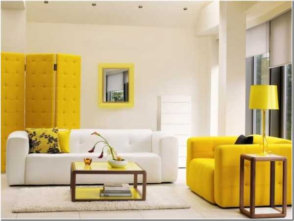 Желтый цвет будет отлично дополнять интерьер гостиной комнаты