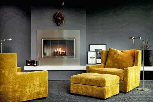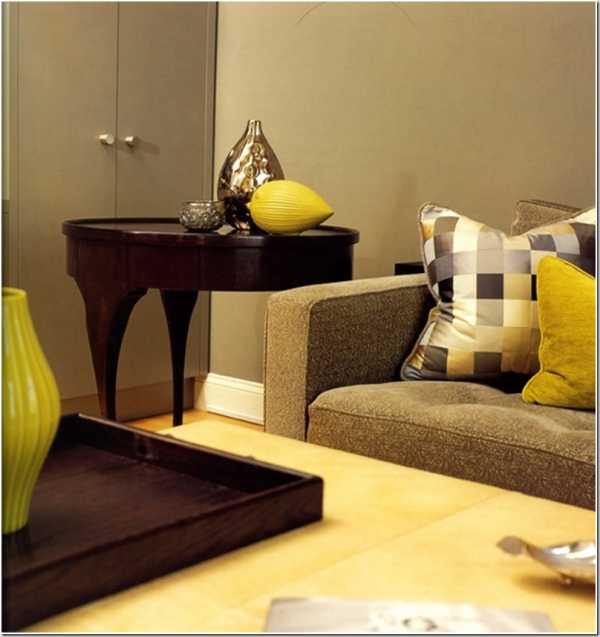 Для элегантной и сдержанной гостиной выберите благородный серый цвет, который сдержит буйство красок, но подчеркнет энергичность желтого. Если вы хотите добавить немного праздничного настроения, то включите в интерьер серебряный цвет.