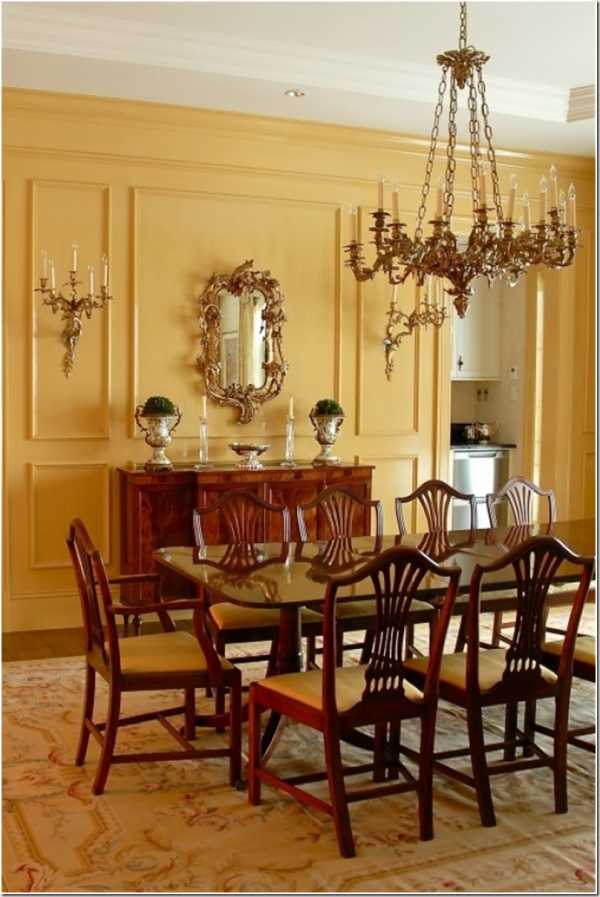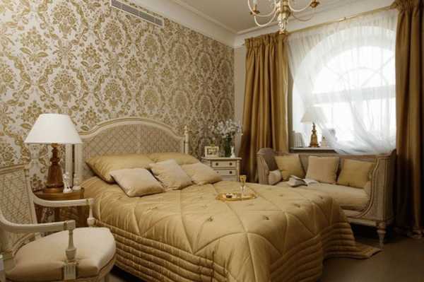 Интерьер в золотом цвете – это атрибут роскоши. Золото должно переливаться, а это значит наличие орнаментов, если это обои, складочек, если это текстиль, резных ножек, ручек, если это дерево.