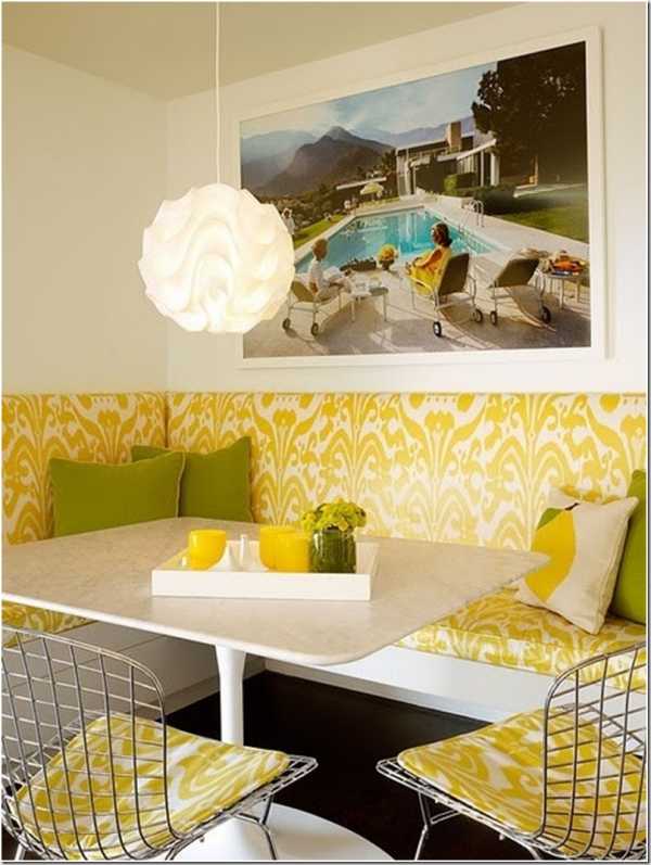 Самым известным и часто встречающимся можно назвать сочетание желтого с белым. Оно отлично смотрится в небольших темных помещениях. Светлый цвет визуально увеличивает размер, а желтый — наполняет солнечным светом. Простота и изысканность таких комбинаций завораживает. К тому же в компании с белым даже самый насыщенный и яркий оттенок будет выглядеть более спокойным.