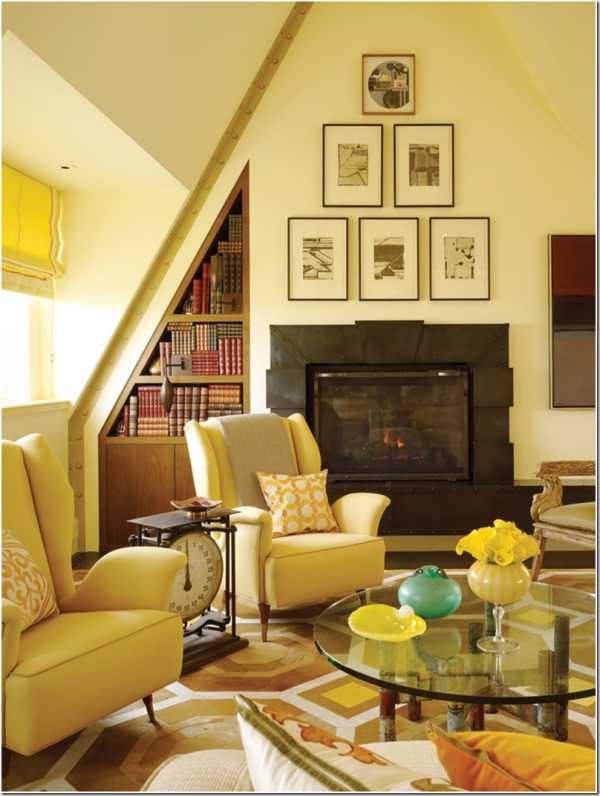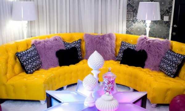Чтобы не перегрузить помещение ярким цветом, дизайнеры часто отказываются от желтого фона, но используют разные оттенки в качестве стильных акцентов. Диванные подушки привлекут к себе внимание в спокойной гостиной, а необычная мебель с желтой обивкой будет выгодно смотреться в любом интерьере.