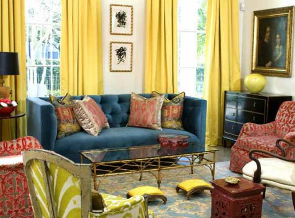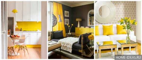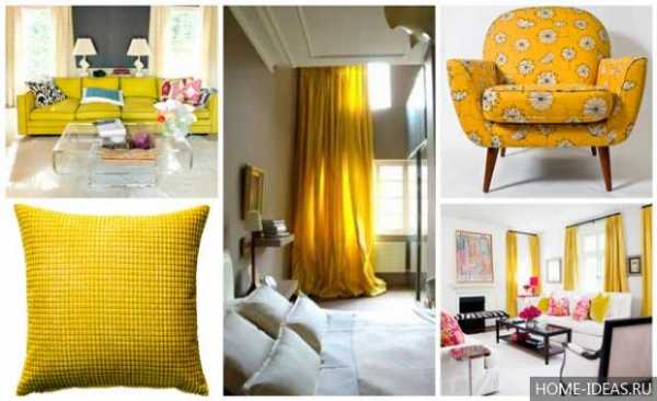 Желтый как дополнительный цвет в интерьере: мебель, шторы, подушки, аксессуары