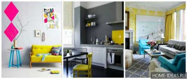 Серый в сочетании с желтым цветом смотрится очень красиво