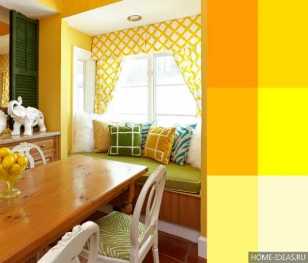 Так, если желтый цвет выбран в качестве главного, дизайнеры рекомендуют «разбавлять» его белой краской, различными оттенками коричневого цвета, синими, зелеными, черными нотками.