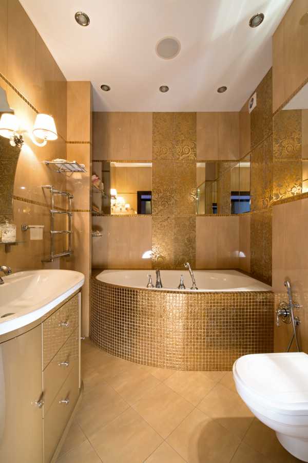 Маленькое помещение лучше оформлять в светлых тонах. Они не только визуально раздвинут стены, но и придадут вашей ванной благородный и изысканный вид. Если вам нравится классика, то соломенный и ванильный оттенок в сочетании с бежевым цветом создадут нужный эффект.