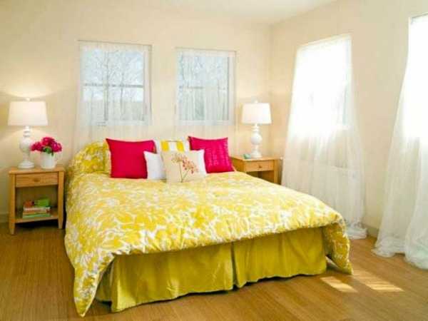 Избавиться от недостатков цвета можно с помощью оттенков желтого. Так, например, яркие тона не подходят для спальни, ведь в этом помещении должна быть спокойная и комфортная атмосфера. Поэтому светлые оттенки желтого цвета в интерьере спальни будут смотреться намного уместнее. Выберите соломенно-желтый, шампань, ванильный или песочный цвет — интерьер будет выглядеть стильно и в то же время спокойно.