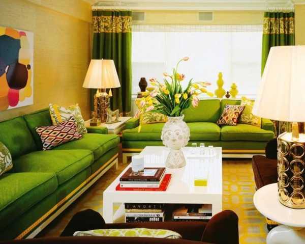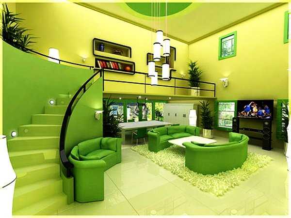 Но более популярным считается «спокойный» вариант, когда используются приглушенные оттенки каждого цвета. Интерьер в желто-зеленом цвете может быть умиротворяющим, если отдать предпочтение бледно-лимонному и мятному.