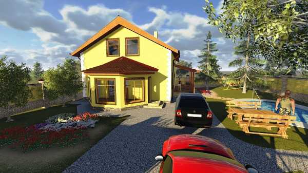 Фасады данного жилища выполнены в ярких, преимущественно теплых тонах. Хотя это далеко не единственное декоративное решение для этого проекта. Благодаря таким элементам, как летняя терраса и веранда, в виде многогранного эркера, а также, благодаря неординарной форме подшивки свесов кровли, дом имеет характерную выразительность и индивидуальность.