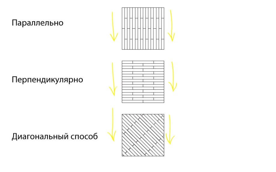 Предусмотрены специальные схемы, которые подробно показывают, как правильно расстелить ламинат. Рассмотрим некоторые из них.